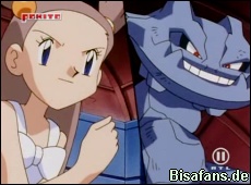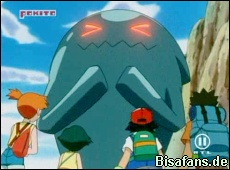 Beim Strand treffen sich alle und Janina wünscht Ash alles gute. Als alle dann jedoch zur Arena gehen, werden sie von Team Rocket und einer gigantischen Woingenau-Statue am Strand aufgehalten.