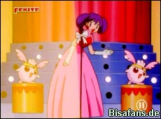 Natürlich kommt es nun wie es kommen mußte... Pummeluff schleicht sich am Ende der Show auf die Bühne und fängt an zu singen. Doch es kommt erneut anders als geplant als auch Team Rocket auftauchen und in einem Lied den Diebstahl von Pikachu ankündigen.