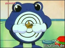 Team Rocket freut sich inzwischen über die Beute und versucht das Quappo dazu zu überzeugen ihnen zu gehorrchen. Dies klappt jedoch nicht und alle bekommen einige der Attacken von Quappo zu spüren.