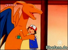 Glurak legt mit einem Flammenwurf los, vor dem sich Dragonir unter Wasser versteckt. Der nun folgende Hyperstrahl-Attacke von Dragonir kann Glurak in der Luft ausweichen. Gegen Dragonirs Drachenwut kann Glurak jedoch nichts machen und stürzt kurz zu Boden.