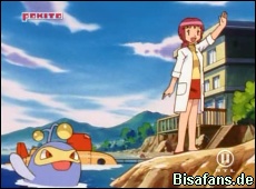 Klar, daß Ash hier zustimmt und er sich direkt auf den Weg zum Meeresforschungsinstitut macht um das Pokémon-Ei abzuholen. Dort angekommen flitzt ihnen eine Frau in einem weißen Kittel entgegen. Vor allem Rocko, der sich schon wieder verliebt hat, flitzt ihr hinterher bis zum Strand wo sie dem "Sprechen" der ankommenden Lapras Famlie zuhört. Mit Hilfe ihres Lanturn und eines Verstärkers ist es nämlich möglich dies zu hören.