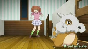 Im Pokémon-Haus wirft sich Tragosso derweil gegen die Tür seines Geheges. Als Reina diese öffnet, stößt es sie zur Seite und läuft weg. Reina folgt ihm.