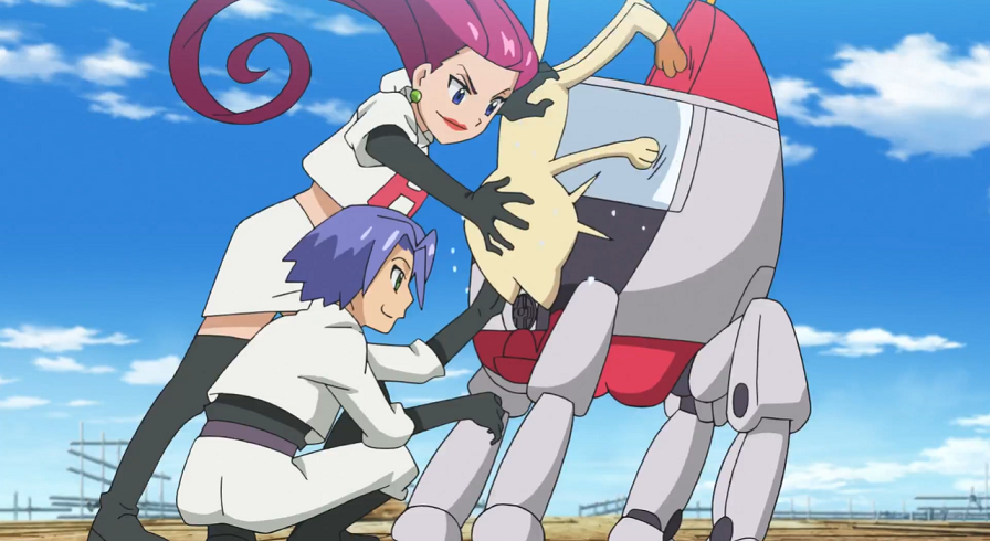 die ihre neue Geheimwaffe bezeichnet. Aus dieser erhalten sie zwei Pokébälle, in denen mit Garados und Despotar zwei starke, von Giovanni gewählte Pokémon enthalten sind, die sie gegen Ash und Goh in den Kampf schicken.