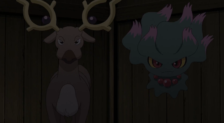 Das Traunfugil macht ihnen auf einer Treppe das Leben schwer, indem es die Stufen zuerst in eine Art Gummi verwandelt und anschließend ganz verschwinden lässt, sodass sie zum unteren Treppenende zurückrutschen. Anschließend verschafft ihnen das Damhirplex die Illusion, eine Felswand hinaufzusteigen, was ihnen gelingt, um sich anschließend in einer Wüste wiederzufinden. Der Großvater weist sein Hoothoot an, Gesichte einzusetzen, was die Illusion sofort beendet, sodass sie sich an der Treppe im Turm wiederfinden, an deren oberen Ende sie Traunfugil und Damhirplex bemerken. Gerade als Damhirplex erneut seine Kräfte gegen die Gruppe einsetzen will, wirft Goh Pokébälle auf die beiden und kann sie so erfolgreich fangen.
