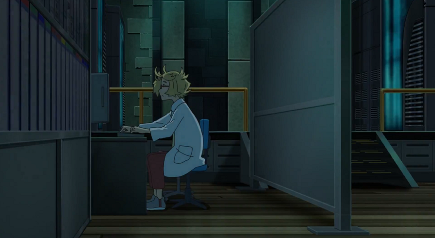 Im selben Moment kommt auch Christin, Professor Kirschs Assistentin zur Arbeit. Gemeinsam betreten sie das Labor und wundern sich über die offene Tür sowie die Dunkelheit, als sie von Renés Magnetilo erschreckt werden. Dieses führt sie in den Keller, wo sie den vor Schreck erstarrten René auf dem Boden liegend finden. Da sich das Gengar auch ihnen gegenüber zeigt, wissen sie auch gleich, mit welchem Übeltäter sie es zu tun haben.