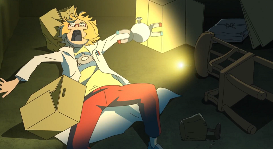 Im Labor sitzt René, der Assistent von Professor Sakurgi, während seiner Arbeit am PC auf einmal im Dunkeln. Um wieder für Strom zu sorgen, macht er sich auf den Weg in den Keller, wo sich der Sicherungskasten befindet. Dort angekommen, ruft er sein Magnetilo aus seinem Pokéball zur Hilfe, das für ihn den Sicherungskasten untersuchen soll. Plötzlich bemerkt er Geräusche hinter sich und als er sich umdreht, sieht, wie auf einmal sämtliche Gegenstände des Kellerraums in der Luft schweben und an der Decke ein Gengar auftaucht, das seine Kräfte gegen ihn und sein Magnetilo einsetzt.