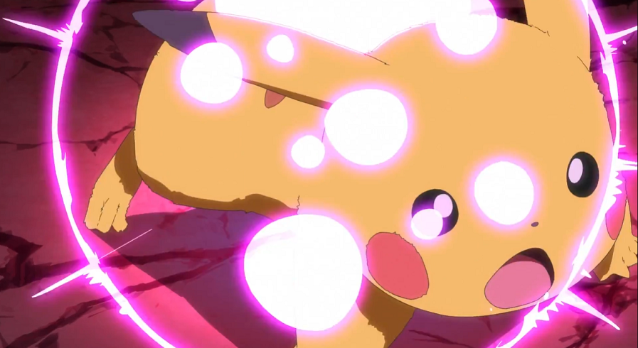 Weder aber Pikachus Elektro-Attacke noch Hopplo mit einem Doppelkick können etwas gegen das Kamalm ausrichten, weshalb sie beschließen, die Flucht anzutreten. Überraschenderweise kann sich das Kamalm, das mit Hilfe seines langen Halses nach ihnen schnappt, nicht weiter strecken; Ash, Goh und ihre Pokémon können so in sicherer Entfernung kurz durchatmen. Plötzlich bemerken Ash und Pikachu Risse im Boden, durch die eine rötliche Farbe scheint. Dadurch gelingt es Pikachu, sich zu gigadynamaximieren. Schweren Schrittes, weil mit sichtlich ungewohnter Größe, macht sich Pikachu auf, um sich Kamalm entgegenzustellen. Mit einer Wasser-Attacke gelingt es diesem, Pikachu kurz zu stoppen und gegen die Fassade des immer noch nahezu vollen Stadions zu schleudern, welches durch den Aufprall spürbar erschüttert wird. Pikachu rafft sich schnell wieder auf und kann dem Kamalm mit seiner Eisenschweif-Attacke ordentlich schaden. Dabei wird es vom herbeigeeilten Delion beobachtet, der vor allem über die Tatsache erstaunt ist, dass Ash gar nicht das dafür erforderliche Dynamax-Band trägt.