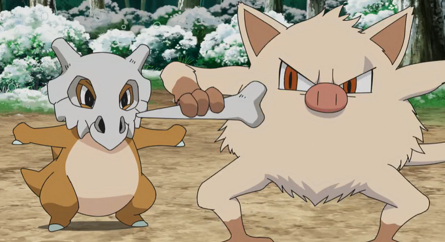 Mit einer Nanabbeere als Köder legen sich Ash und Goh sowie Gohs Pokémon versteckt im Gebüsch auf die Lauer. Und tatsächlich, kurz darauf tauchen die Menki wieder auf und werden daraufhin gleich von Pikachu und Hopplo in einen Kampf verwickelt. Gemeinsam mit Gohs Smettbo gelingt es ihnen, die Menki dingfest zu machen. Die Schwein-Affen-Pokémon wollen Tragossos Knochen allerdings verloren haben und beteuern, nicht zu wissen, wo dieser sich nun befinde. Ash und Goh gelingt es jedoch, dem nun wieder traurigen Tragosso Mut zu machen.