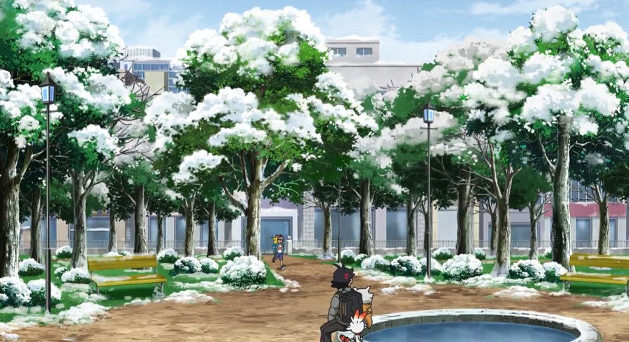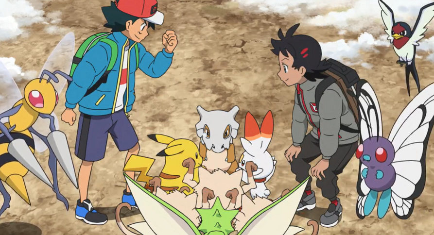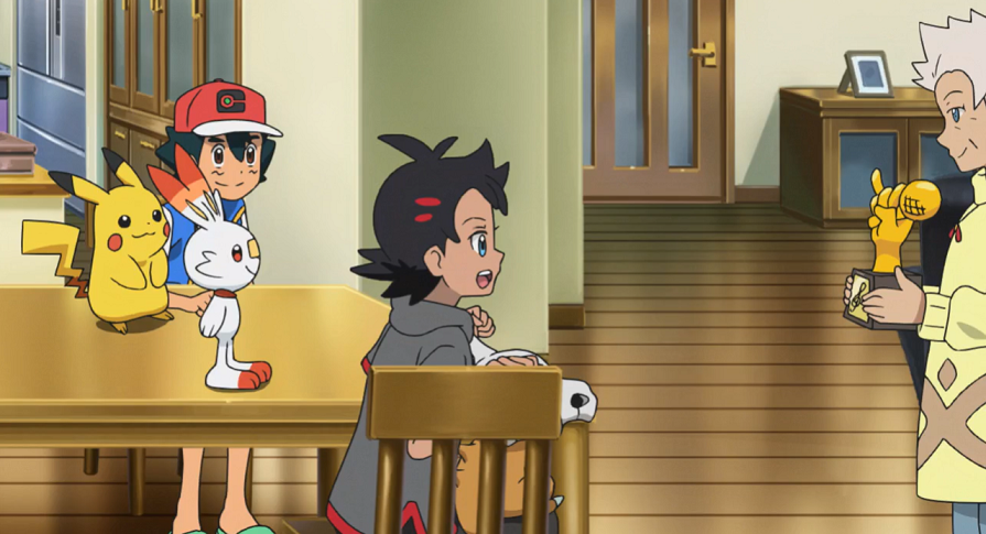 Nachdem Goh ihm im Telefongespräch von dem Zwischenfall im Park berichtet hat, stößt Ash kurz darauf zu Goh, Hopplo und Tragosso.