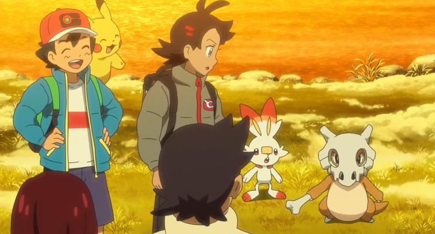 Fleißig und gemeinsam mit den Menki sind alle weiterhin am Suchen. Die Sonne ist bereits am Untergehen, als sie von einem Ibitak einen Hinweis erhalten. Auf Ashs Dragoran folgen ihm dieser, Goh, Hopplo und Tragosso sowie Gohs weitere Pokémon. Dabei werden sie in der Luft von Gohs Eltern gesehen, die inzwischen auf dem Nachhauseweg sind.