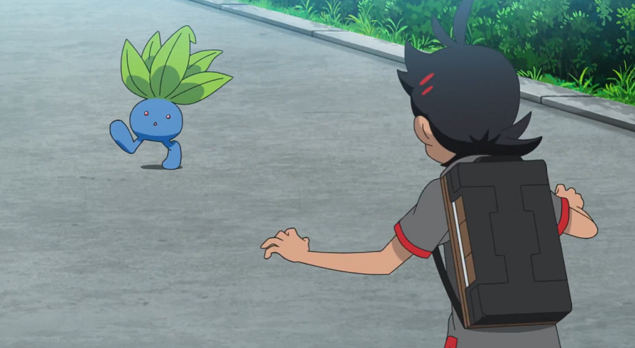 Auch Goh ist mit Chloe und zwei Kindern, darunter dem Bruder von Chloe, unterwegs. Im Gegensatz zu Ash legt Goh seinen Fokus allerdings auf das Fangen der Pokémon, was er den begeisterten Kindern gleich vorführt, indem er Taubsi, Nidoran♂ und Nidoran♀ fängt. Es folgen noch Quapsel und Myrapla, ehe ein Porenta seine Serie durchbricht und sich nicht fangen lassen will.