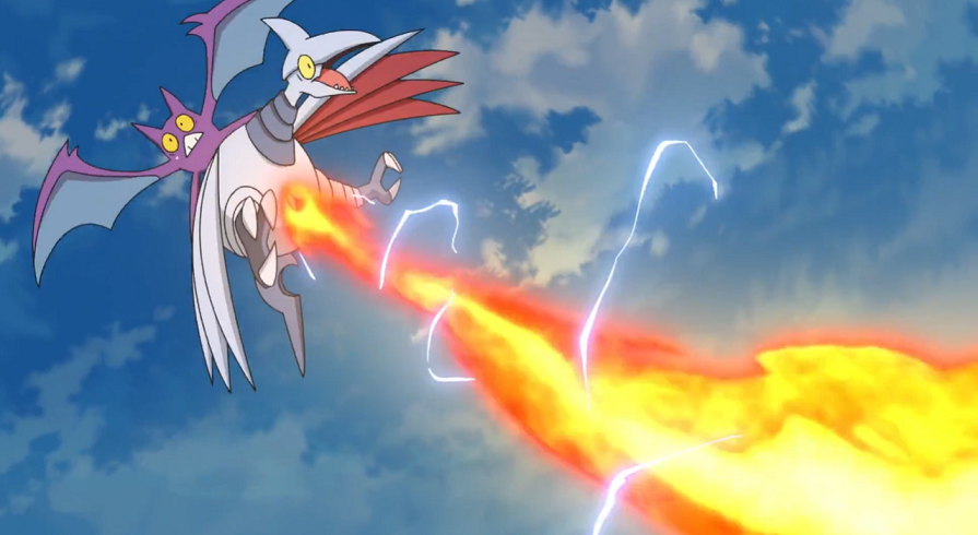 Team Rocket erhält nun wieder per Pelipper-Post seine Geheimmaschine. Aus dieser zieht es zwei Pokébälle mit starken Pokémon. So kann es Panzaeron und Iksbat in den Kampf schicken. Anfangs haben Pikach und Kickerlo Probleme, da deren Attacken nicht die Reichweite haben, um die beiden Flug-Pokémon zu erwischen. Ash kommt aber die entscheidende Idee: Kickerlo schießt einen Feuerball ab, den Pikachu mit seinem Eisenschweif in Richtung von Iksbat und Panzaeron schlägt. Dadurch werden beide Pokémon besiegt und Team Rocket in die Flucht geschlagen.
