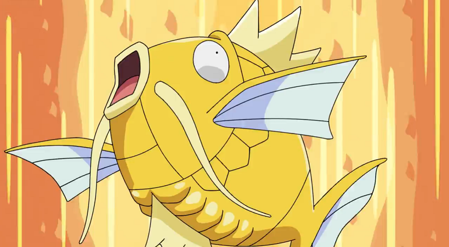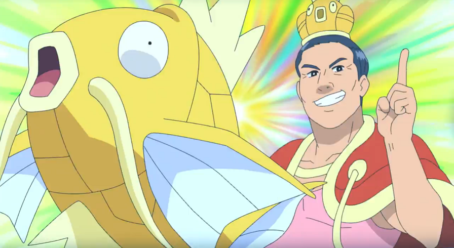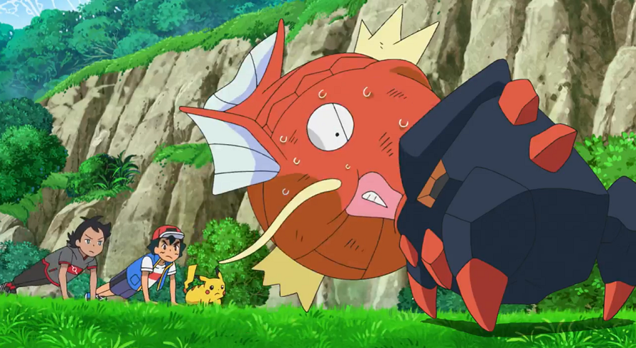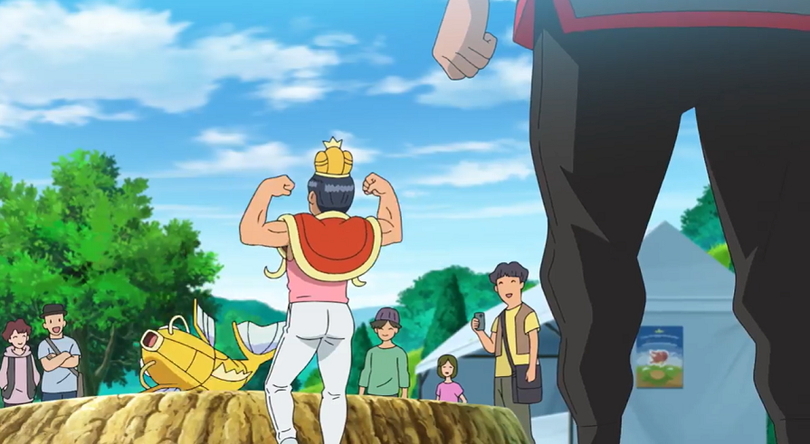 Auf die Ankündigung seines Gegners, er und sein Karpador haben sich bisher nicht ernsthaft angestrengt, zeigt Goh sich wenig beeindruckt und offenbart, dass dessen Karpador bisher mit immensen Gewichten an seiner Krone am Kopf angetreten sei.