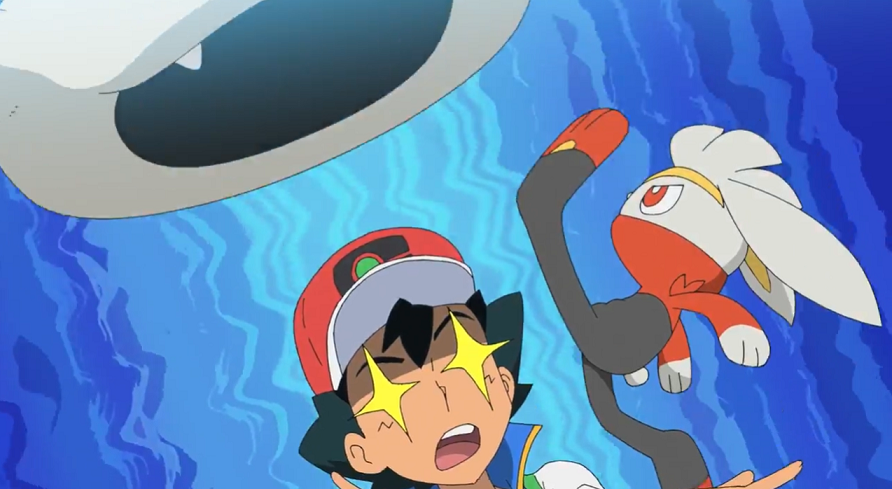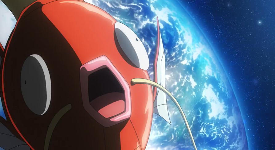 Während Tompadors Karpador seinen Sprung gleich ausführt, sammelt Gohs Karpador erstmal in Ruhe Energie, um dann mit einem gewaltigen Sprung bis ins Weltall das Finale für sich zu entscheiden - eigentlich. Denn da Gohs Karpador nicht wieder landet, kann dessen Resultat auch nicht anerkannt werden, womit Gohs Gegner zum Sieger des Finales erklärt wird. Goh und Ash sind traurig über den Verlust von Karpador.
