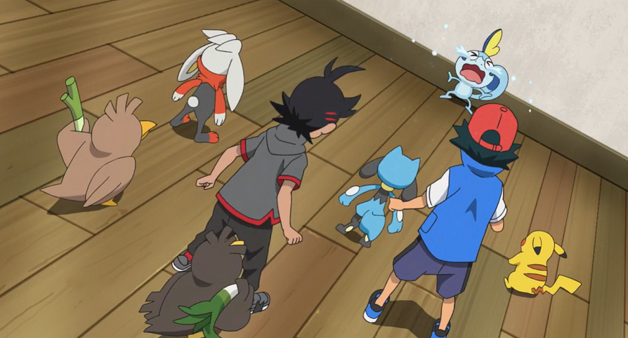 Ash und Goh sind noch immer in Score City, einer Stadt in der Galar-Region, wo sie am Vortag im dortigen Stadion einen Kampf zwischen Delion und Roy verfolgt haben. Anschließend ist es Ash gelungen, ein Galar-Porenta zu fangen.