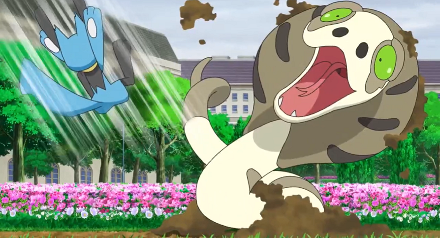 Durch den Pokédex im Smart-Rotom erfahren Ash und Goh, dass sich das schüchterne Memmeon durch seine eigenen Tränen und den durch den Stress erzeugten Schweiß sich hat vor ihnen unsichtbar machen können. Auf einmal schrecken die beiden auf, als Riolu hinter ihnen zu schreien beginnt. Dieses hat beim Buddeln ein Salanga freigeschaufelt.