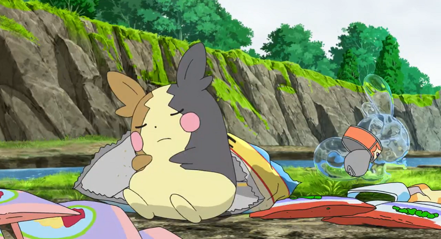 Team Rocket ist ebenfalls am Fluss gestrandet, jedoch außerhalb der Stadt. Sie bemerken, wie sich ein Morpeko an ihrem Proviant bedient. Wütend wirft Jessie eine leere Konservendose nach dem Pokémon, verfehlt es jedoch und trifft dafür das dahinter unsichtbar sitzende Memmeon an dessen Hinterkopf. Morpeko läuft zwar davon, doch Jessie greift sich das ausgeknockte und daher nun sichtbare Memmeon. Da sie im Hintergrund nun die Memmeon-Rufe von Ash und Goh hören, zählt Team Rocket Eins und Eins zusammen.