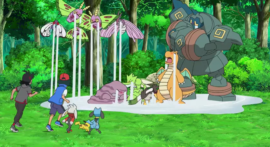 Im Kirsch-Park trainiert Ash fleißig bereits am frühen Morgen mit Pikachu und Riolu, als Goh und dessen Kickerlo plötzlich herbeigeeilt kommen und dieser sich nach seinem Memmeon erkundigt, das er aus den Augen verloren hat und nirgends finden kann. Ash und seine Pokémon zögern nicht und machen sich mit Goh auf die Suche. Einen Anhaltspunkt finden sie dabei sofort, da einige von Ashs und Gohs Pokémon unüberhörbar zu heulen begonnen haben. Bei den heulenden Pokémon angekommen, fangen auch Ash, Goh und deren Pokémon gleich an zu weinen. Mit Hilfe ihrer Stachelspore können Omot und Smettbo das heulende Memmeon auf einem Baum enttarnen, wo es schließlich von Ashs Dragoran eingefangen und beruhigt werden kann.