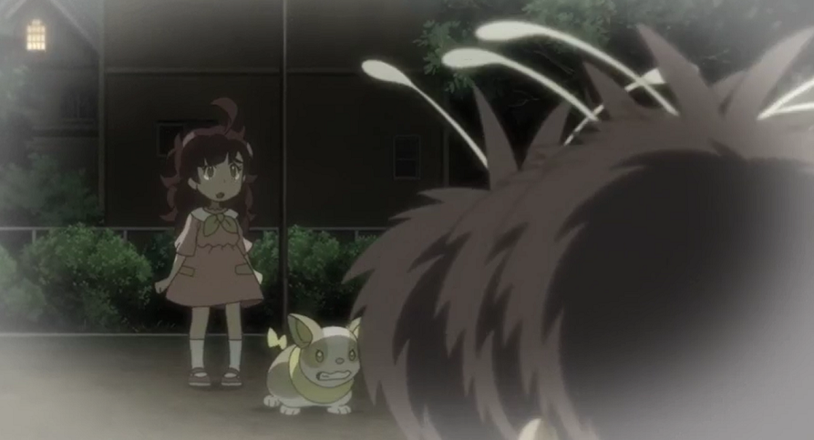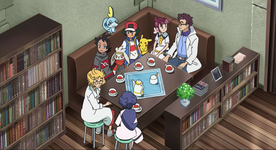 Gemeinsam mit seinen beiden Mitarbeitern sowie Chloe, Ash und Goh sitzt Professor Kirsch kurz darauf beim Tee zusammen. Er und sein Mitarbeiter René beginnen zu erzählen, wie Chloe damals als kleines Kind eine Eifersucht auf Voldi entwickelt habe, als dieses zu ihrem Vater gekommen sei, aus Sorge, sie könne die Fürsorge ihrer Eltern an Voldi verlieren. Ash ist nun neugierig und fragt, wie Chloe und Voldi dann so gute Freunde geworden wären. Professor Kirsch holt dazu etwas aus: Chloe habe in ihrer Eifersucht eines Tages Voldi angeschrien, es solle einfach verschwinden. Daraufhin sei Voldi tatsächlich weggelaufen. Als sie dies erfahren habe, sei ihr bewusst geworden, wie unfair sie sich Voldi gegenüber verhalten habe, weshalb sie auf die Suche nach ihm gegangen sei. Dabei sei sie auf einem Spielplatz von drei Bluzuk angegriffen worden. Chloe, die sich nun auch wieder an die Geschehnisse erinnert, fällt wieder ein, wie Voldi plötzlich aufgetaucht sei und sie vor den Bluzuk beschützt habe. Seitdem seien beide, so Professor Kirsch, unzertrennlich.