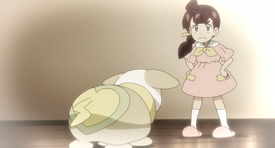 Als Chloe von der Schule zu Hause ankommt, wird sie gleich von Voldi und Dusselgurr begrüßt. Da das Flug-Pokémon von Voldis Hintern auf ihre Schulter fliegt, ergreift Voldi die Eifersucht und es beginnt zu murren. Das ruft Ash und Goh auf den Plan, die mit Pikachu und Kickerlo aus dem Labor eilen, um zu sehen, was los ist. Professor Kirsch, der ebenfalls dazustößt, klärt die beiden über Voldis Eifersucht auf. Chloe beteuert, sie versuche, beide Pokémon gleich zu behandeln. Laut Professor Kirsch sei Voldis Eifersucht im Vergleich Chloes damaliger Eifersucht jedoch relativ gering.