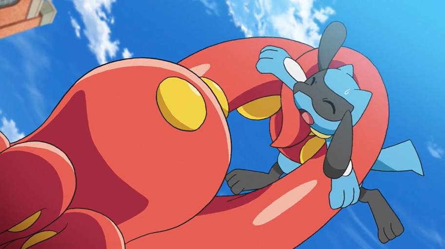 Da Ash nach seinem letzten, verloren gegangenen Kampf gegen Saida im Ranking der Pokémon-Weltmeisterschaften auf Platz 930 gefallen ist, ist er hochmotiviert, noch härter zu trainieren, um die kommenden Kämpfe zu gewinnen und so schnell wieder Plätze gut zu machen. Daher joggt er mit seinen Pokémon, begleitet von Goh, durch die Stadt, wo er auf einen Trainer trifft, der ihn zu einem Kampf im Rahmen der Weltmeisterschaften herausfordert. Ash willigt ein und schickt sein Riolu in den 1-gegen-1-Kampf. Sein Gegner entscheidet sich für Octillery, was Ash sofort an seinen Kampf gegen Saida und deren Kaocto erinnert. Daher weist er sein Pokémon an, eher auf Abstand zu kämpfen und lässt es mit Vakuumwellen angreifen. Octillery kann diesen aber problemlos ausweichen und Riolu im Gegenzug mit Psychokinese treffen. Anschließend schnappt es sich das dadurch kurzzeitig konfuse Riolu mit Wickel und macht mit Octazooka kurzen Prozess.