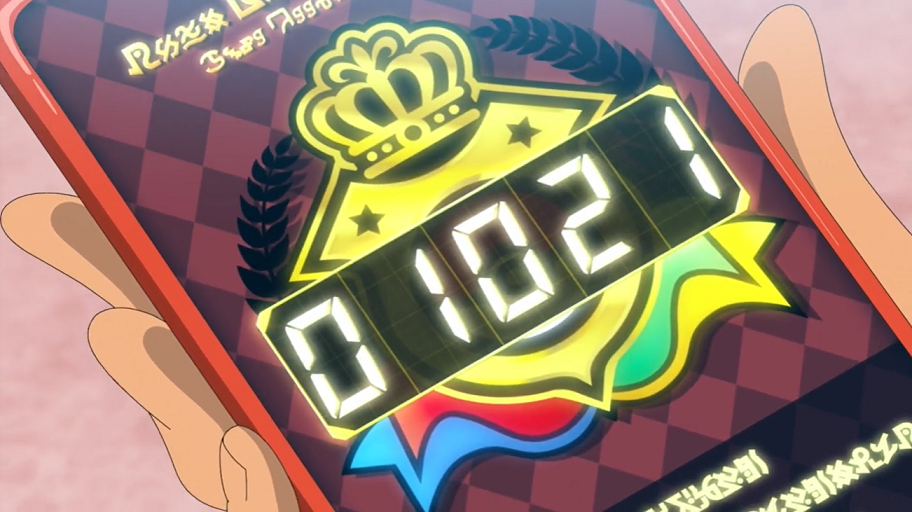 Ash ist sehr geknickt, als er auf seinem Smart-Rotom sieht, dass er nun auf Platz 1021 und damit aus der Super- in die Normal-Klasse zurückgefallen ist.