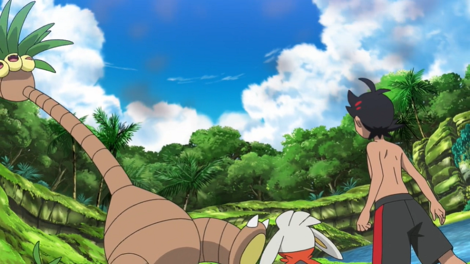 Da bereits einige Zeit seit ihrer letzten Begegnung vergangen ist, will Ash Kiawe zu einem Kampf herausfordern. Dieser lehnt aber ab, da er bereits Goh herausgefordert habe und er so feststellen wolle, dass Ashs Begleiter stark genug sei, um ihn bei der Verwirklichung seines Traumes zu unterstützen. Goh nimmt Kiawes Herausforderung an.