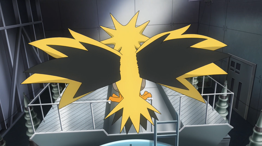 Dunkle Gewitterwolken ziehen nun auf und Zapdos scheint mit kräftigen Blitzen Ash, Goh und deren Pokémon anzugreifen. Pikachu wird von einem dieser Blitze getroffen, nimmt dadurch allerdings keinen Schaden, sondern wirkt lebendiger als zuvor. Ash und Goh beobachten, wie es nun auch andere Elektro-Pokémon zum Kraftwerk zieht, wo sie sich von Zapdos' Blitzen mit Energie aufladen lassen. Anschließend fliegt Zapdos davon. Goh ist im ersten Moment enttäuscht, freut sich dann aber, die Gelegenheit gehabt zu haben, gegen Zapdos kämpfen zu können.