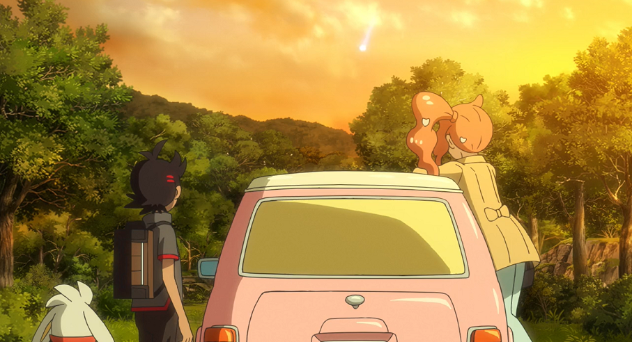 Die Sonne ist bereits am Untergehen, als Sania und Goh das Pokémon-Labor in Brassbury erreichen. Nachdem sie von Gohs Traum, alle Pokémon zu fangen, erfahren hat, meint sie, er gebe sicherlich irgendwann mal einen guten Pokémon-Professor ab. Im selben Moment fällt ein Meteor vor ihnen vom Himmel, bei dem es sich, wie Professor Magnolica, die inzwischen aus dem Labor gekommen ist, feststellt, um einen Wunschstern handle.