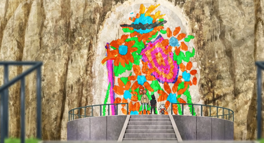 In Passbeck erreichen Sania und Goh ein buntes Wandbild an einem Berg, in dem unter anderem ein Schwert und ein Schild zu erkennen sind. Als sie weiter zum nächsten Teil der Ruinen wollen, macht sich der Mitarbeiter von Rose, der ihnen die ganze Zeit gefolgt ist, bemerkbar und fordert sie auf, mit ihm mit zu kommen. Da die beiden das ablehnen, fordert er sie zum Kampf heraus, in den er Deponitox schickt. Da das Wandgemälde Galar-Partikel auszuströmen scheint, kann sich dieses in Gigadynamax-Deponitox verwandeln. Doch auch Goh nutzt die Gelegenheit und dynamaximiert Kickerlo mit Hilfe seines neu erhaltenen Dynamax-Bandes. Im darauffolgenden Kampf fällt Kickerlo gegen das Wandbild, wodurch es dieses zerstört. Dadurch werden Statuen von Zacian und Zamazenta freigelegt.