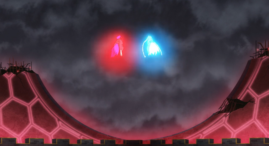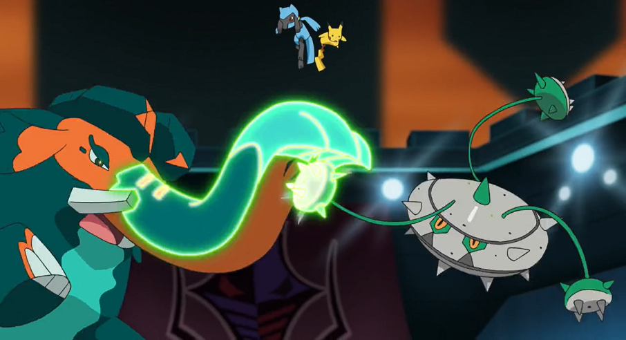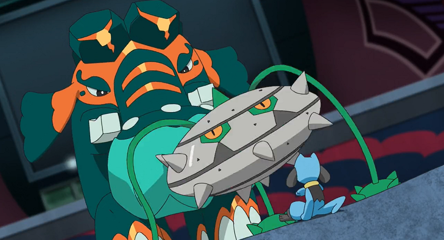 Endynalos attackiert Delions geschwächtes Glurak nun mit Dynamax-Kanone. Zwar können Delion und Glurak ausweichen, allerdings dringt die Attacke von der Spitze des Turmes bis in die Arena durch, in der Ash und Rose kämpfen. So werden Ash und dessen Pikachu, das gerade dabei war, zu attackieren, aus dem Feld geschleudert. Das versuchen Roses Pokémon auszunutzen. Allerdings kann das herbei eilende Riolu den Angriff auf seinen Trainer und Pikachu verhindern, indem es Patinarajas Rüssel und Tentantels Stachelkugel mit seiner gesamten Kraft aufhält. Von beiden unter Druck gesetzt, entwickelt sich Riolu.
