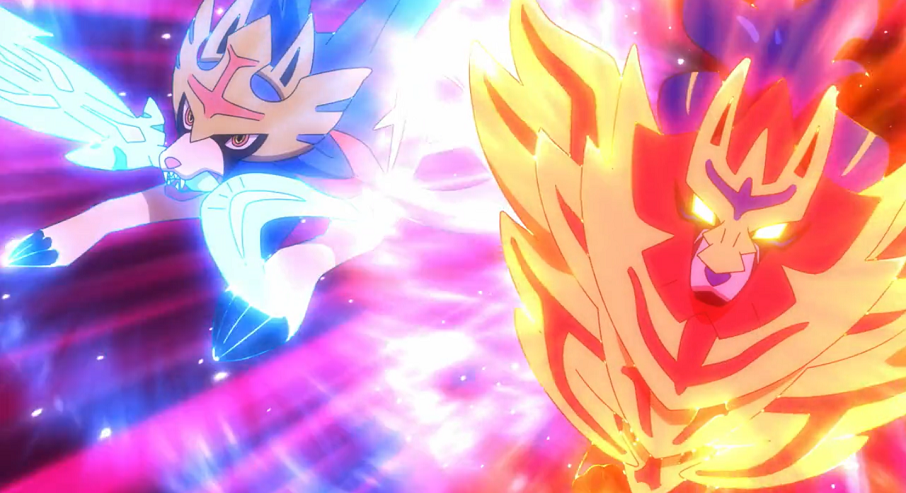 Da Delion und Glurak bei Endynalos' Ausbruch aus dem Ball weggeschleudert worden sind, müssen nun Ash und Goh den Kampf fortführen. Allerdings können Pikachu, Lucario und Liberlo mit deren Attacken nichts gegen das mächtige Pokémon ausrichten. Dieses wiederum greift mit Unendynastrahlen an. Die Wucht dieser Attacke wirft nicht nur die drei Pokémon, sondern auch Ash und Goh um. Dabei verliert Goh die im Schlummerwald gefundenen Utensilien, das rostige Schwert und den rostigen Schild, die kurz zu glühen beginnen. Als Ash diese auf dem Boden bemerkt, erklärt ihm Goh deren Hintergrund. Die beiden vermuten, dass es sich dabei um das Schwert sowie das Schild aus der Legende um Galar handelt. Während die ebenfalls nun dazugekommene Sania sich um Delion kümmert, stellen sich Ash mit dem glühenden Schwert und Goh mit dem glühenden Schild Endynalos, das bereits die nächste Attacke vorbereitet, entgegen. Dadurch rufen sie Zacian und Zamazenta aus dem Schlummerwald herbei, die plötzlich vor ihnen auftauchen, Endynalos' Attacken abwehren und den Kampf mit diesem aufnehmen. Mit Hilfe des Schwertes und des Schildes nehmen sie ihre besonderen Formen - Zacian als König des Schwertes und Zamazenta als König des Schildes - an. Die beiden Legendären Pokémon können, mit der Unterstützung von Pikachu, Lucario und Liberlo, schließlich Endynalos besiegen.