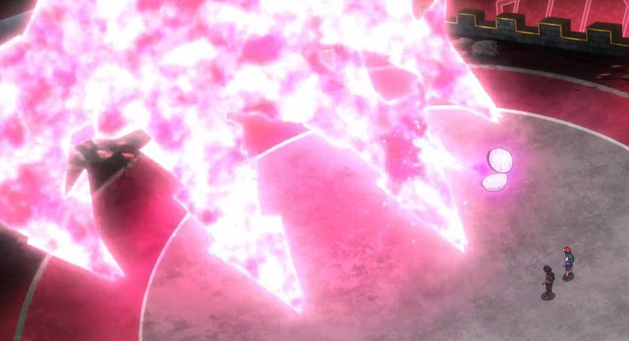 Ash steht Rose im Kampf gegenüber. Rose ist erfreut, als er sieht, dass Endynalos Galar-Partikel zu absorbieren scheint. Er erklärt Ash, dass es dies tue, um seine finale Form anzunehmen.