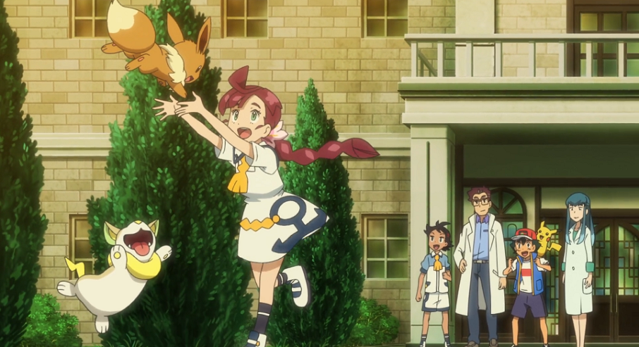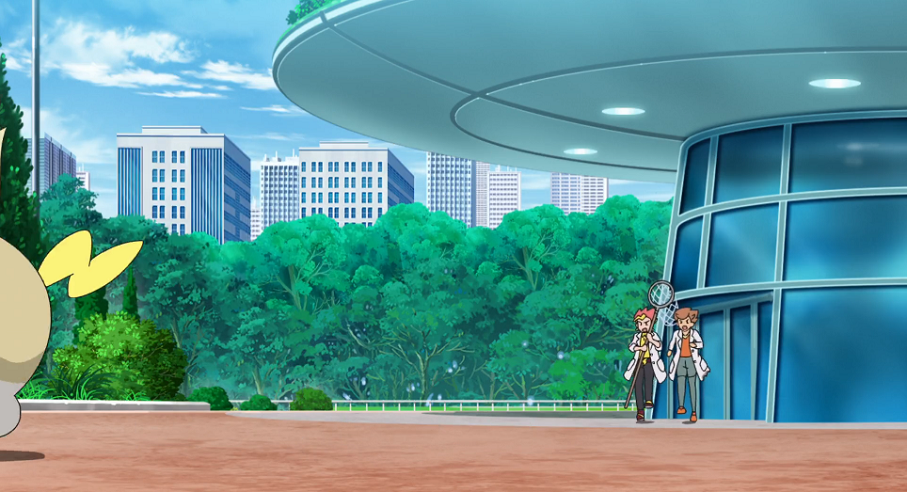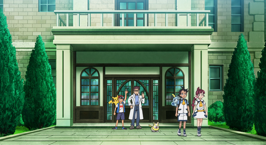 Kurz darauf erreichen auch Ash und Pikachu das Schulgelände.