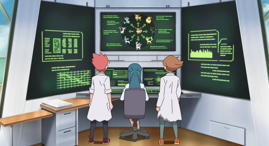 Kurz darauf legen die Forscher Evoli in ihrem Labor nacheinander zuerst einen Feuer- und dann einen Donnerstein hin. Trotz der Berührung beider Steine entwickelt sich Evoli nicht. Die Forscher, die sich wohl schon längere Zeit mit diesem speziellen Evoli und dessen Nicht-Entwicklung zu beschäftigen scheinen, fragen sich nach der Ursache.