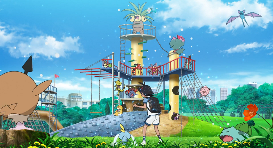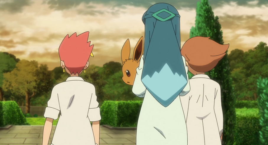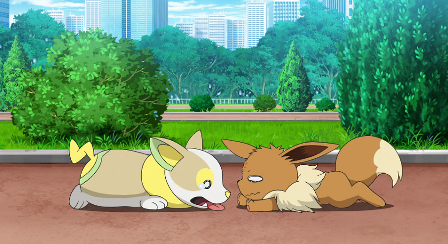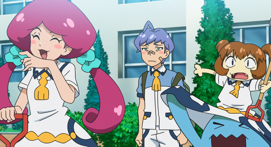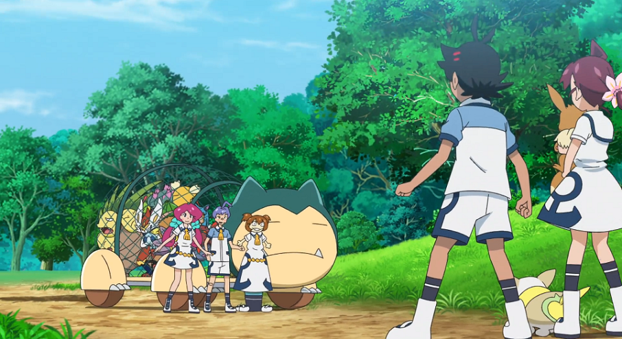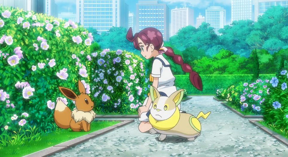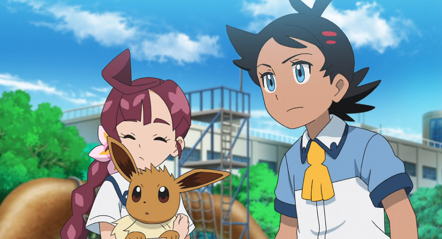 Als sie das Schulgelände erreichen, treffen sie auf ihre Lehrerin, die Goh daran erinnert, er müsse sein mitgebrachtes Memmeon im Schulgarten bei den anderen mitgebrachten Pokémon zurücklassen. Da Memmeon beim Gedanken, dort alleine auf Goh zu warten, in Tränen ausbricht und auch alle anderen Pokémon mit seinen Tränen ansteckt, bittet Goh sein Liberlo, solange auf Memmeon aufzupassen.