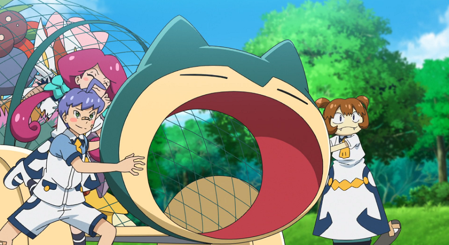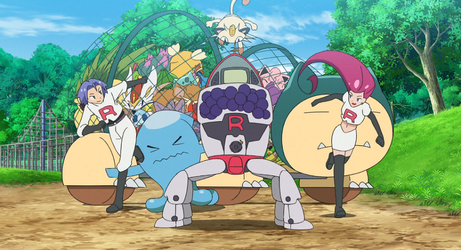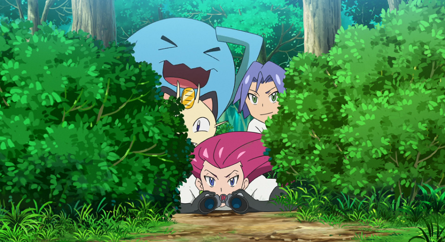 Aus der Ferne beobachtet Team Rocket den Schulgarten und beschließt, sich die Pokémon zu schnappen.