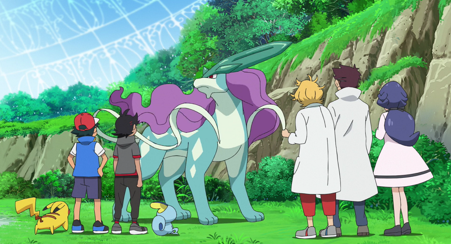 Nachdem Gohs Pokémon kurzen Prozess mit den Pokémon der Jäger gemacht haben, will das deren Boss nicht auf sich sitzen lassen. Er schickt sein Hundemon in den Kampf, das Gohs Traumato mit Knirscher sofort besiegt. Die Jäger beginnen nun erneut damit, Suicune mit Hilfe eines Netzes zu fangen. Verzweifelt muss Goh, der von den Jägern und deren Pokémon zurückgehalten wird, mit ansehen, wie die Jäger das sich im Netz wehrende Suicune zu misshandeln beginnen, ohne dass er noch etwas dagegen tun kann. Doch plötzlich taucht Ash auf, um seinem Freund zu helfen. Lucario und Pikachu können Goh befreien und gemeinsam stürzen sich deren Pokémon wieder in den Kampf, den das gefangene Suicune genau verfolgt. Dabei kann es mit ansehen, wie Ash, Goh und ihre Pokémon alles geben, jedoch große Probleme mit ihren Gegnern haben. Als Suicune erkennt, wie Gohs Liberlo trotz Vergiftung weiterkämpft, kann es ebenfalls neue Kraft schöpfen. Der Boss der Jäger will den Kampf nun beenden. Mit Knirscher lässt er sein Hundemon Ash, Goh und Liberlo attackieren. Im letzten Moment wird das auf sie zu springende Unlicht-Pokémon von einem Wind gebremst und anschließend mit einer mächtigen Hydropumpe davon geschossen. Ash und Goh stellen fest, dass sich Suicune selbst aus dem Netz hat befreien können und sie im Kampf unterstützen will. Mit seiner alten Kraft kann es die Pokémon der Jäger zusammen mit Goh besiegen und die Schurken schließlich mit seiner Eisstrahl-Attacke in einem Eisblock gefangen nehmen, ehe sie kurz darauf von Officer Rocky abgeholt werden.