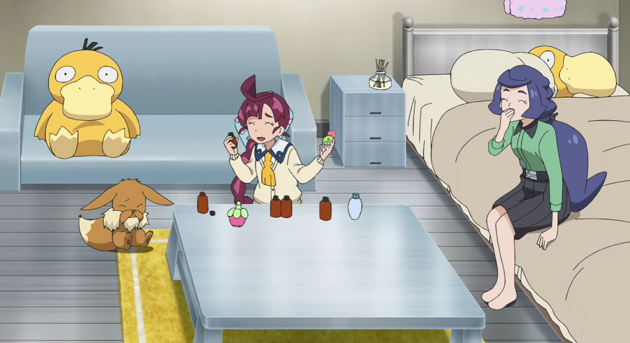 In Christins Wohnung angekommen, muss diese noch kurz für Ordnung sorgen, ehe Chloe und Evoli es sich gemütlich können. Chloe fallen natürlich sofort die vielen Enton-Fanartikel auf. Christin erklärt, leicht errötet, dass sie Enton-Merchandise beruhige und sie sich dieses deshalb gerne anschaue.