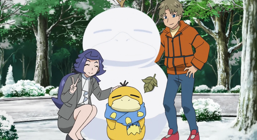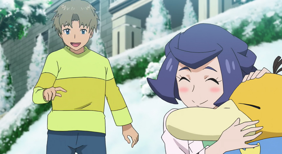Christin ist gerade dabei, vor dem Labor Schnee zu schippen, als Chloe mit Ash, Goh, Pikachu, Evoli, dem Mann und dessen Enton angerannt kommt. Voller Freude berichtet sie Christin, dass sie fündig geworden sei. Als Christin sieht, was Chloe meint, beginnt sie zu weinen und auf die beiden zuzurennen. Allerdings läuft sie, anders als von Chloe gedacht, an dem Mann vorbei und weiter zu Enton, welches sie voller Freude umarmt. Christin bedankt sich bei Enton für dessen Hilfe mit dem warmen Schal und das Spielen im Schnee damals.
