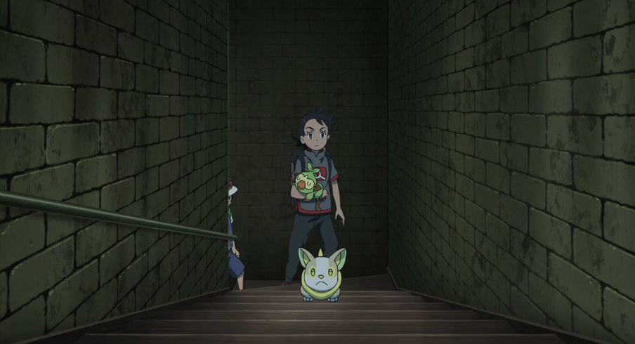 Nachdem sich die Lage beruhigt hat, sitzt Goh mit dem auf seinem Arm schlafenden Chimpep auf dem Sofa und erklärt Professor Kirsch und seinen Mitarbeitern die Situation. Gemeinsam wollen sie anschließend Chimpeps richtigen Trainer finden. Da es laut Christin keinerlei Online-Meldungen zu einem vermissten Chimpep gibt, kommt Goh die Idee, mit Hilfe von Voldis Nase festzustellen, auf welchem Weg das Pokémon ins Labor gelangt ist.