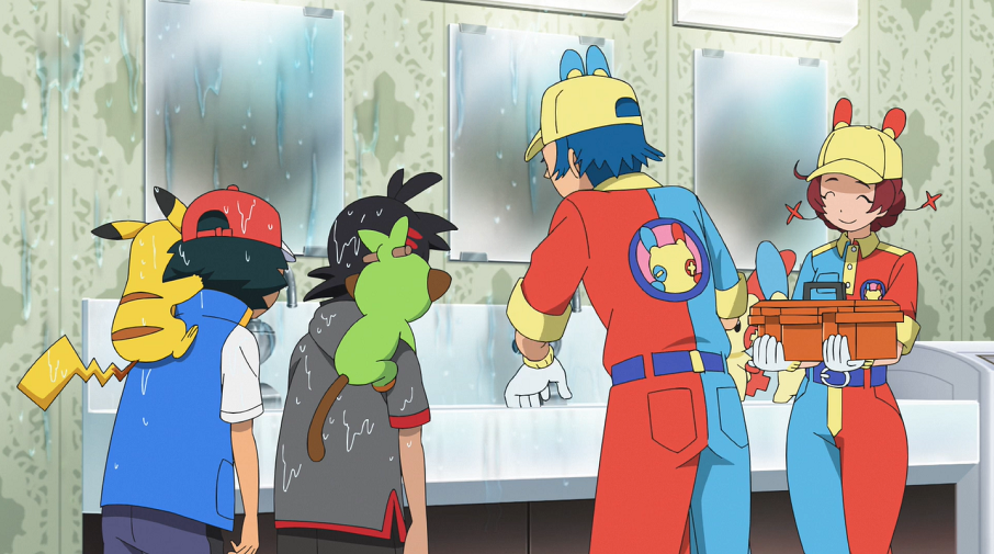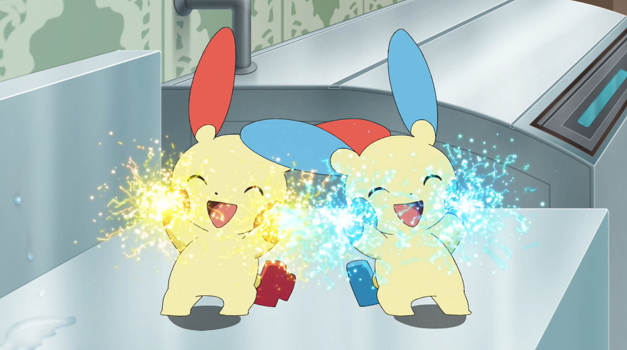Aufgrund defekter Wasserhähne im Badezimmer muss Professor Kirsch Handwerker rufen. Die beiden Handwerker, ein junges Geschwisterpaar mit den Namen Multi und Divi, kommen gemeinsam mit ihren Pokémon Plusle und Minun, die ihnen bei ihrer Arbeit helfen. Auch deren Arbeitskleidung ist ganz ihren beiden Elektro-Pokémon gewidmet, die sie als Maskottchen führen. Ash und Goh freuen sich, die beiden in ihren Augen niedlichen Pokémon kennenzulernen. Mulpi* erklärt ihnen, dass sie gemeinsam mit Plusle und Minun über handwerkliche Arbeiten hinaus auch weitere Dienstleistungen bis zum Pokémon-Sitting anbieten.
