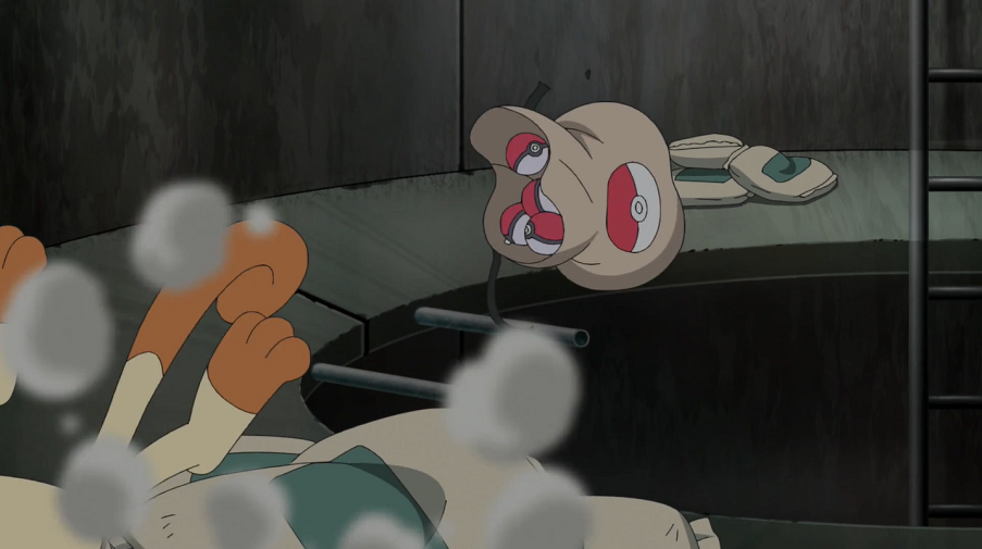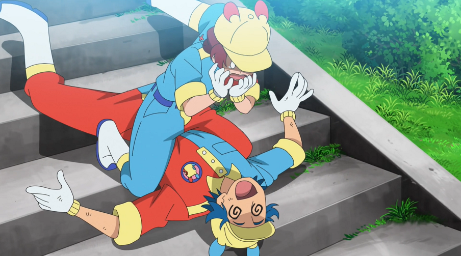 Nachdem die beiden ihre Arbeit erfolgreich abgeschlossen haben, verabschieden sie sich von Ash, Goh und Professor Kirsch. Gerade als Divi die Treppe zur Straße hinuntergehen will, beginnt er leicht zu straucheln. Seine Schwester Multi versucht noch, ihm zu helfen, allerdings kollidieren die beiden dadurch erst recht und fallen die Treppe herunter. Unten gelandet hat sich der Bruder so verletzt, dass er ins Krankenhaus muss, während seine Schwester glücklicherweise mit dem Schrecken davon gekommen ist.