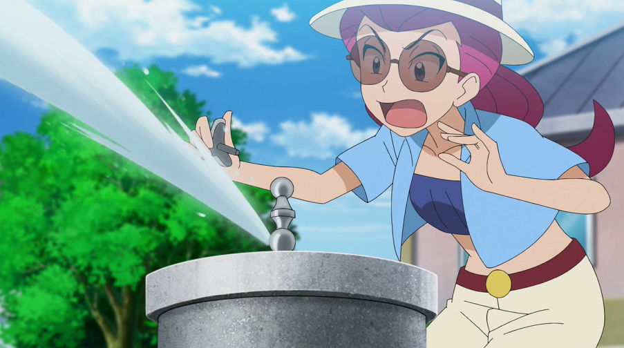 Team Rocket, das sich verkleidet auf einem Spielplatz aufhält, hat Wind von der Tauros-Herde bekommen, um die sich die Gruppe zuvor gekümmert hat, und will sich davon welche schnappen. Da Jessie Durst hat, macht sie sich auf zu einem Wasserspender. Als sie den Hahn aufdreht, macht sie den Drehgriff beim Öffnen kaputt, sodass zu allen Seiten das Wasser herausspritzt. Mauzi entdeckt an der Straße das Fahrzeug von Multi. Aufgrund des handwerklichen Logos bittet es Multi, die im Auto sitzt, um Hilfe. Im selben Moment kehren auch Ash und Goh, die etwas zu essen besorgt haben, mit ihren Pokémon zurück. Multi ist zuerst voller Panik, bekommt dann aber von Plusle Mut zugesprochen, die Aufgabe anzugehen. Gemeinsam mit Ash und Goh gelingt es ihr, den Wasserspender zu reparieren.