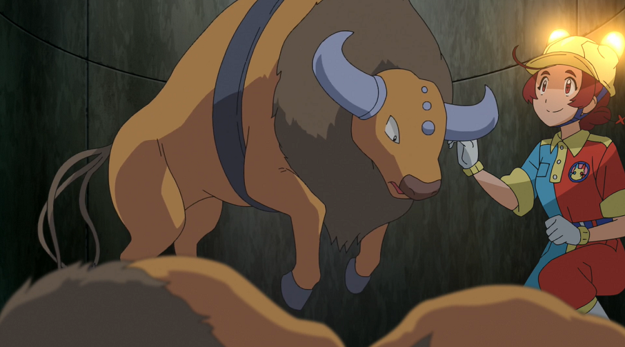 Ash, Goh und Multi wollen den Tauros und Mauzi helfen. Die verunsicherte Multi ist zunächst überfordert und weiß nicht so recht, was sie tun soll. Doch nachdem sie kurz durchgeatmet hat, ist sie wie ausgewechselt und beginnt, alles für die Rettungsaktion anzuleiten. Mit der Seilwinde am Auto und einigen weiteren Hilfsmitteln machen sie eine Konstruktion bereit, um die Tauros und Mauzi aus dem Schacht zu bergen. Die entschlossene Multi klettert dazu diesen hinunter, während Ash und Goh die Stellung halten und James sich im Auto sitzend bereit macht, die Winde zu bedienen. Im Schacht bringt Multi einen Gurt an das erste Tauros an, das anschließend nach oben gezogen werden kann. So gelingt es ihnen nach und nach, Tauros zu bergen. Plusle, Pikachu und Chimpep feuern alle Beteiligten derweil kräftig an, während das von den Geschehnissen erstaunte Minun noch mit sich hadert.