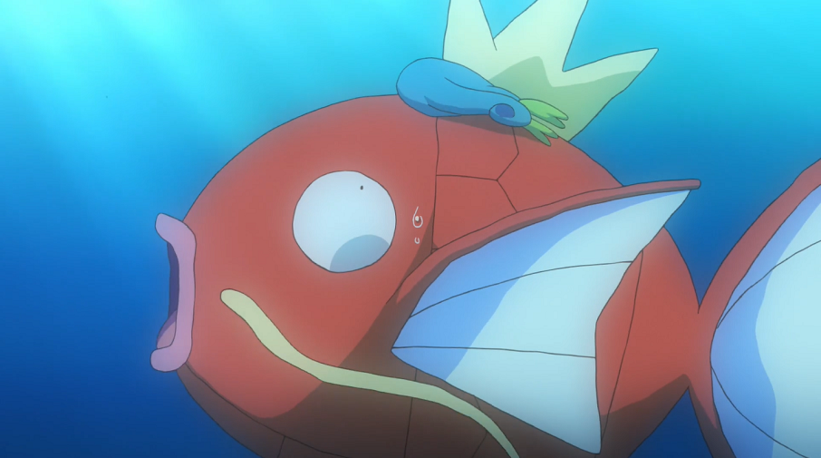 Dieses macht sich freudig und immer noch in der Annahme, es habe sich zu Intelleon entwickelt, auf den Weg zum Wasser. Als es darin sein Spiegelbild sieht, bricht für es eine kleine Welt zusammen. Selbst die Aufmunterungsversuche der auftauchenden Wasser-Pokémon können nichts bewirken, im Gegenteil: als es wütend wird und die Pokémon mit seiner langen Zunge vertreiben will, trifft es ein Lampi, das sich mit einem Donnerschock revanchiert. Dadurch fällt es bewusstlos ins Wasser und landet auf einem tauchenden Karpador, das Phlegleon daraufhin mit einem Sprung aus dem Wasser und einem gezielten Flossenschlag davonschleudert.