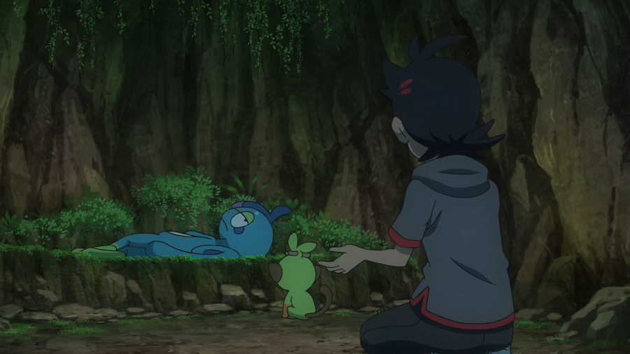 Derweil suchen Ash, Goh und Chloe im Park nach Phlegleon, können es aber nicht finden. Daher ruft Goh Liberlo zur Unterstützung bei der Suche.