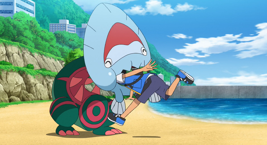 Schließlich entschuldigt sich Jugong bei Aalabyss. Gohs Pokémon muss dabei feststellen, dass eines der Saganabyss und Aalabyss ein Paar sind.