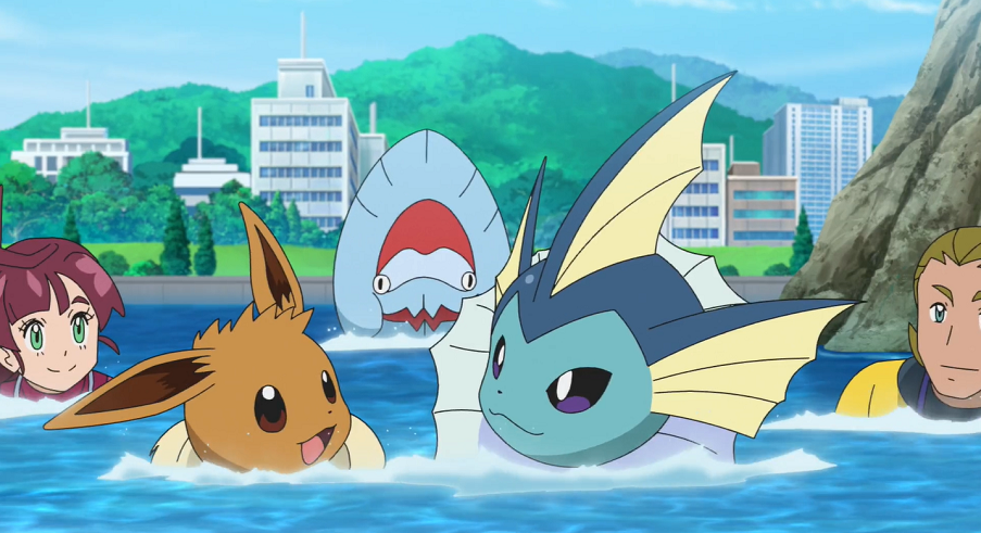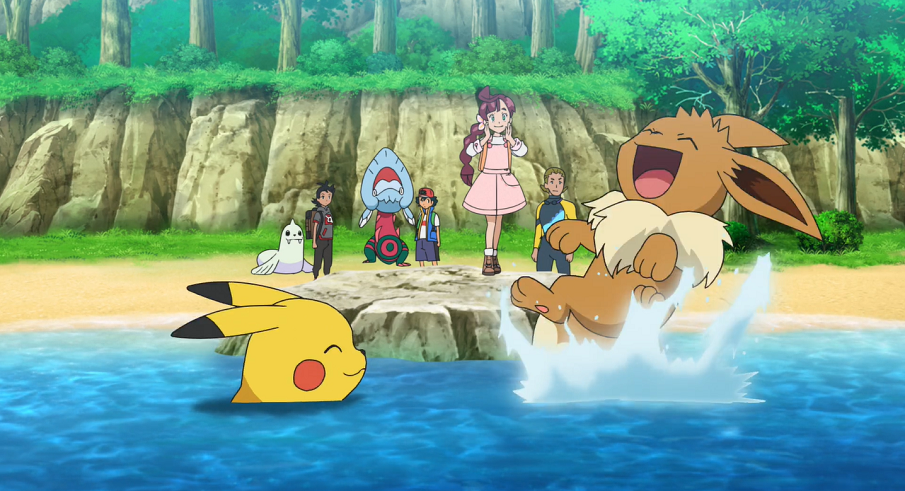 Im Labor verfolgen Ash und Goh begeistert die Übertragung eines Rennen des Pokémon Marine-Wettbewerbs, bei dem Trainer mit ihren Wasser-Pokémon einen Hindernisparcours überwinden müssen. Auch Chloes Evoli ist Feuer und Flamme für das Geschehen und fiebert mit einem Aquana mit, das schließlich tatsächlich das Rennen gewinnt. Da Chloe mehr über Evoli und dessen Entwicklungen lernen möchte und Christin den Trainer des Aquana von der Universität kennt, ergibt sich für Chloe und Evoli die Möglichkeit, die beiden zu treffen.