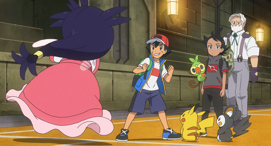 Ash hat derweil die Arena erreicht, vor der er auf ein Milza trifft, von welchem er annimmt, dass es jenes von Lilia sei. Im selben Augenblick taucht jedoch Lysander, der Arenaleiter von Twindrake City, auf, zu dem das Drachen-Pokémon gehört und der sich freut, Ash wiederzusehen. Ash bedankt sich bei diesem, dass er Lilia und ihm die Arena für den Kampf zur Verfügung stellt. Im selben Augenblick stößt auch Goh hinzu, den Ash mit Lysander bekannt macht. Da Ashs Smart-Rotom sich meldet, scheint Lilia bereit für den Kampf, weshalb sich Ash, gefolgt von Goh und Lysander, in die Arena begibt.